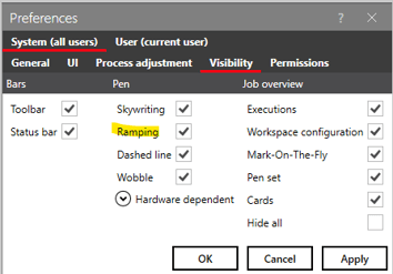 Once Ramping is activated you will find the ramping configuration within the pen settings: